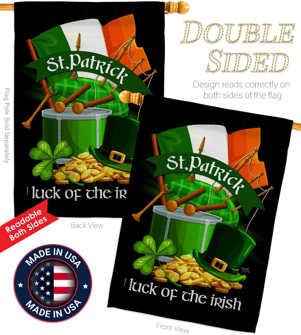 St Patrick Beautiful Large House FlagBreeze Decor have variety of House Flag for all occasions. Uniquely design for hanging indoor or outdoor use. We are committed to offering you exceptional values. Our customers enjoy displaying our House Flag for longer periods. Specification: Theme: St Patrick Size: House Flag 28" x 40" Print: Double-Sided Readable: Readable Both Sides Material: Weather Resistant 3 Layers Blockout Stitching: Double Stitched Display: Vertical Hang Type: Sleeve Artist: © Jimmy Wagner Special Features: Origin: Made In USAPackage Include: 1 pc x House Flag 28" x 40" Package Decorative FlagsFor more than a decade, we’ve been dedicated to manufacturing flags with no comparison in quality and beautiful designs. Our flags are made with our Pro Guard material that is soft to the touch and designs can be read correctly on the flag. A feature that our customers will love. We are committed to using eco-friendly inks that won’t leave a foot print in our environment. MPN: BD-SA-H-102063-IP-BO-D-US21-BD 02063 52063