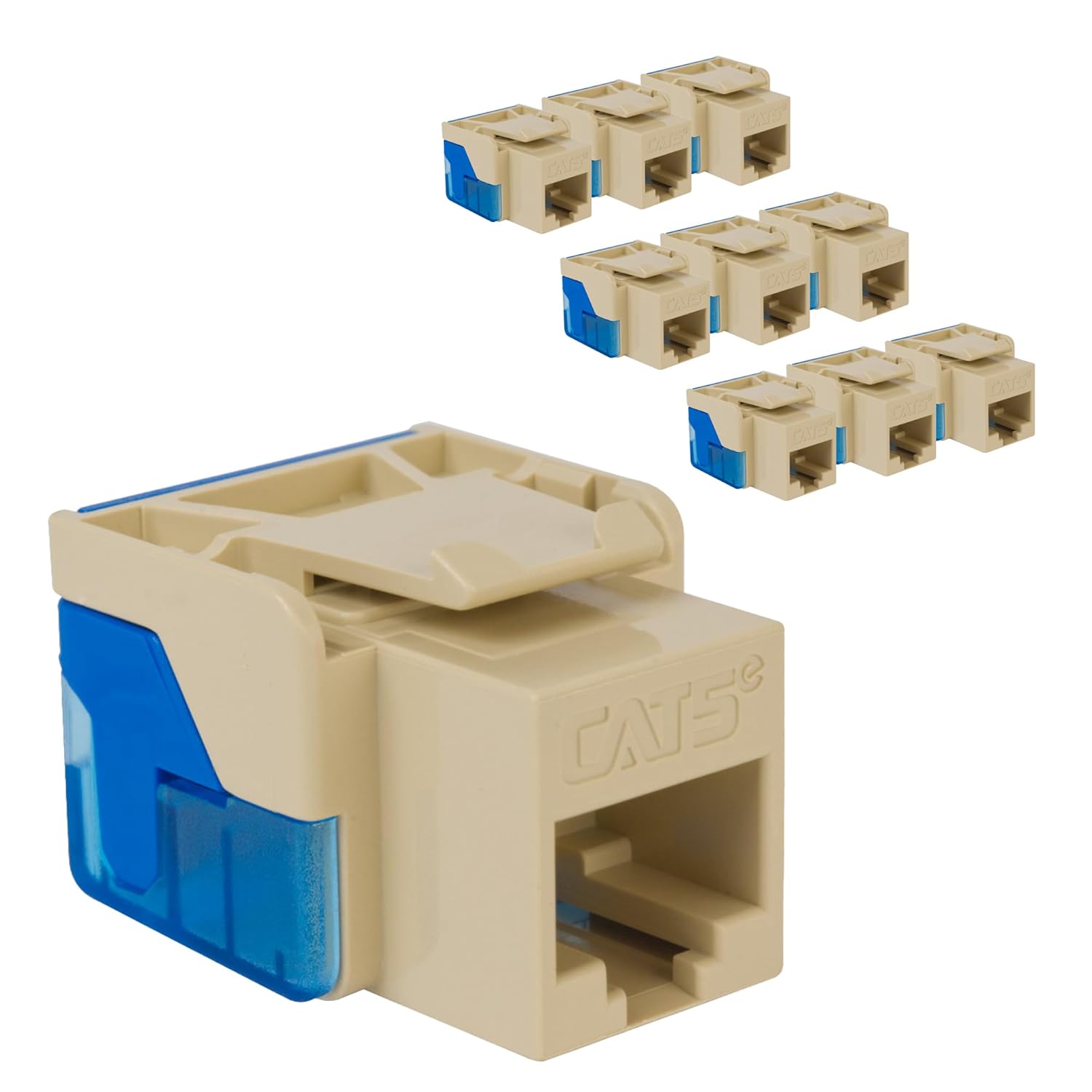 • PoE++ RATED FOR HIGH-POWER DEVICES: This CAT5e keystone jack features 50 micro-inch gold-plated high-retention contacts over 100 micro-inches of nickel, providing support for up to 100 watts of Power over Ethernet (PoE++). Ideal for powering devices such as pan-tilt-zoom security cameras, webcams, and other types of networked equipment, these RJ45 (8P8C) connectors are built for 8-position, 8-conductor configurations, ensuring a reliable connection for high-power applications.