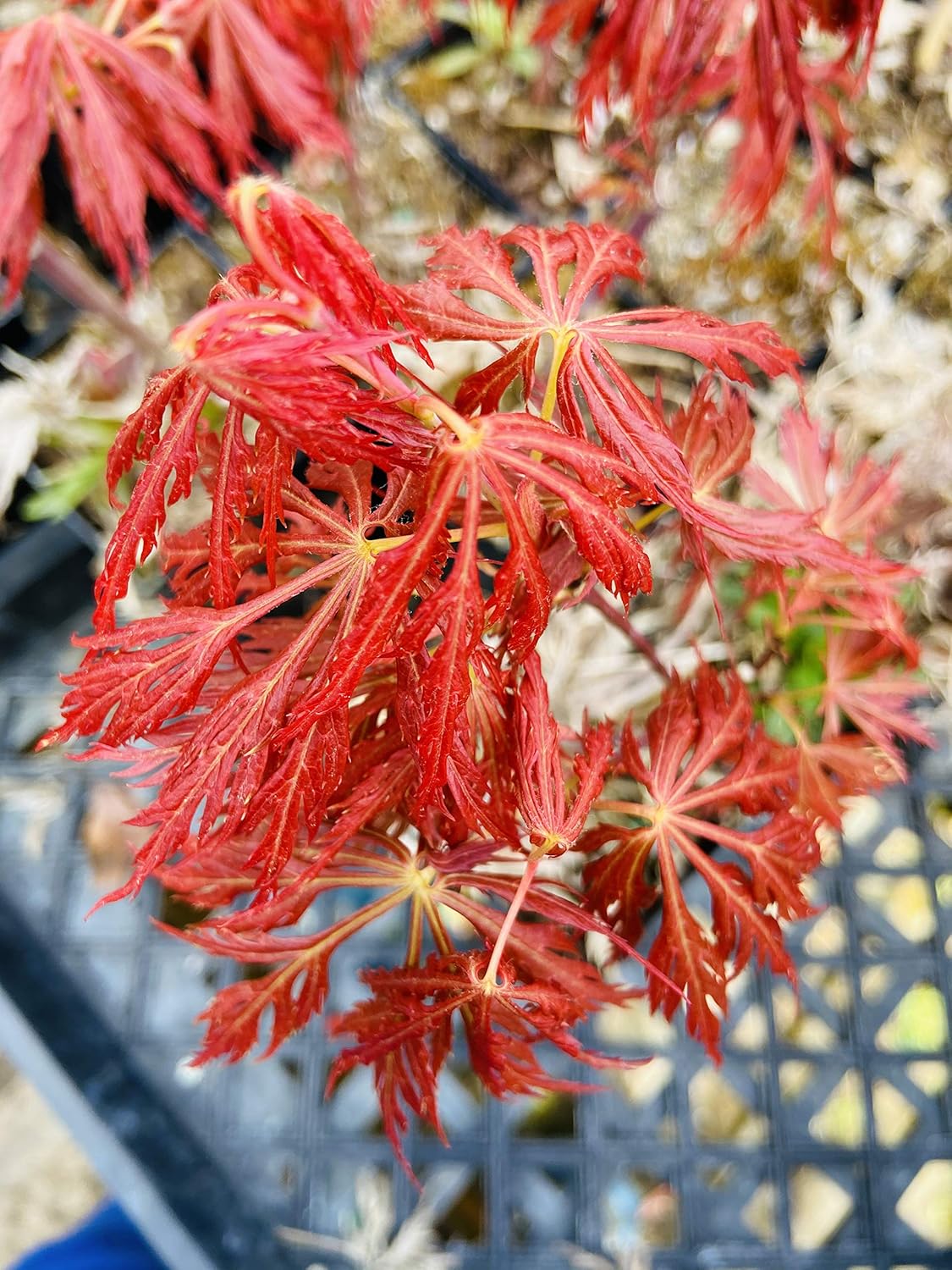 Acer shirasawanum 'Kawaii' (Kawaii Full Moon Maple) * Full Sun-Part shade * Zones 5-7 * 1' tall * 2' wide * Origin Japan Beautiful Dwarf introduction! Leaves are orange plum-red in spring and throughout summer! Acer shirasawanum 'Kawaii' A VERY HARD TO FIND deciduous, dwarf, low-mounding dissectum. Leaves are orange plum-red in spring and throughout summer, and are smaller than most dissectums. Fall color offers brilliant red and deep orange. This variety is beautiful it is hard to describe. Name means "cute" in Japanese. Prefers sun/partial shade in well-drained soil. 1' tall x 2' wide in 10 years. Hardy to -20 degrees. USDA zone 5. VERY RARE!