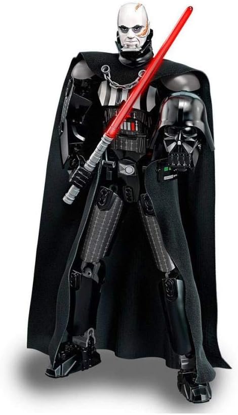 Rule with a plastic fist with this buildable and highly posable Darth Vader figure. This impressive figure features detailed armor and chest decoration, textile tunic and cape, and a detachable Lightsaber. Imperial leaders will love swinging his arm in battle using the wheel on his back, and lifting Lord Vader's helmet to reveal the scarred face of fallen Jedi warrior, Anakin Skywalker. Buildable and highly posable Darth Vader figure features a textile tunic and cape, detailed armor and chest decoration, wheel-operated arm-swinging function and a removable helmet revealing Anakin Skywalker’s face. Features new-for-January-2018 decorated head, removable helmet, and textile tunic and cape. Move the limbs into any battle pose. Sturdy and durable design for intense action play. Play out epic adventures from the Star Wars saga. Stands over 12” (32cm) tall.