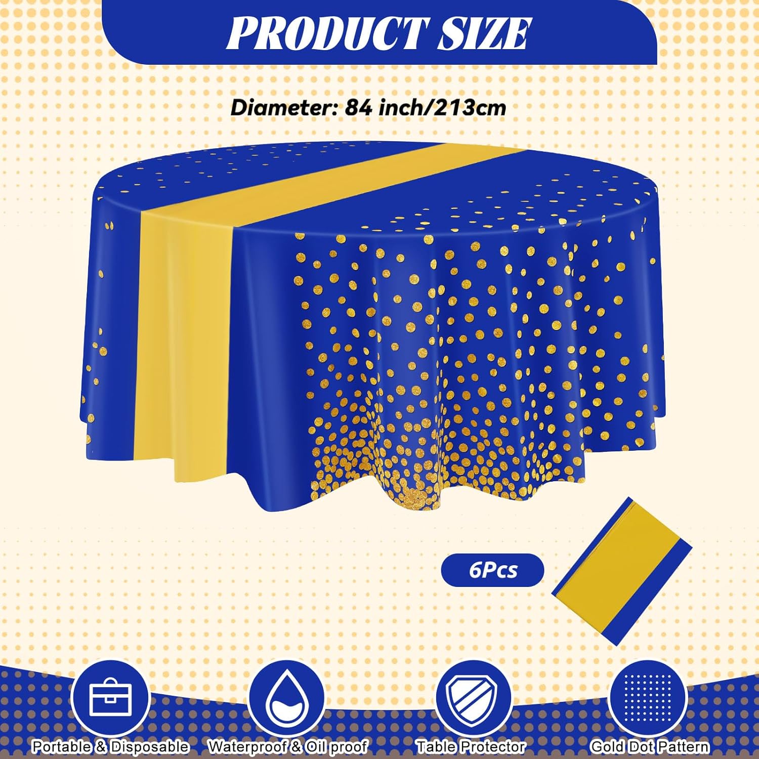 | Included Components | 6 x Disposable round tablecloths |