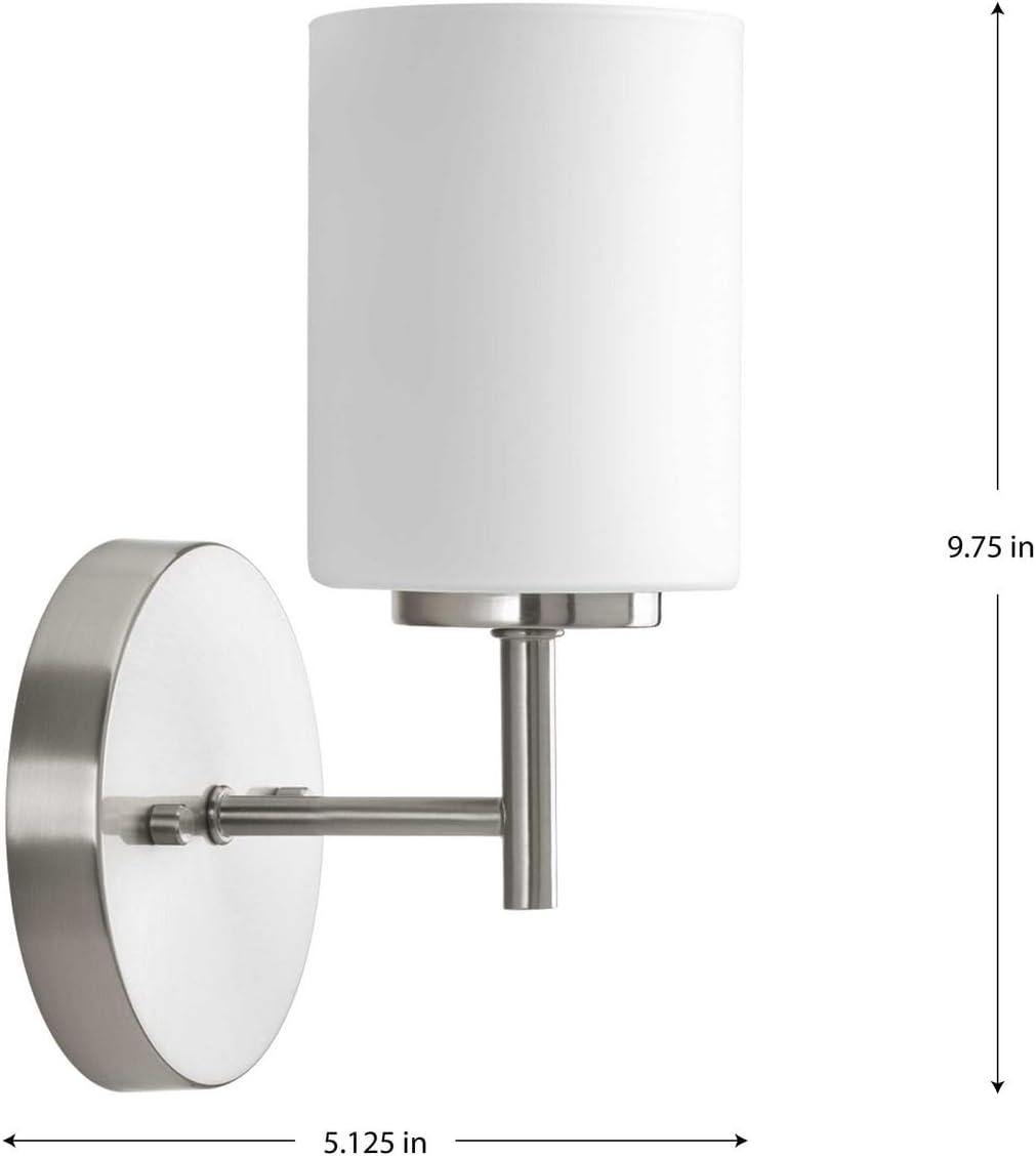 Smooth forms, linear details and a pleasingly elegant frame enhance a simplified modern look for the Replay One-Light Bath and Vanity Light. This light is ideal for bathrooms and powders rooms in modern and transitional settings. The versatile fixture can be mounted up or down to provide clear illumination to the room. Its clean design perfectly complements modern interiors, providing a strong accent in contemporary settings. The vanity light fixture is coated with a beautiful brushed nickel finish, beautifully fitting with contemporary decor. The sophisticated frame of the bathroom wall light complements the soft etched glass shade, bringing a modern appeal. It uses one 100-Watt maximum, medium base bulb or LED equivalent (sold separately), providing ample illumination. The bath light is dimmable when used with a compatible wall dimmer and dimmable light bulbs, allowing you to adjust the bathroom lighting to your preference. The vanity lighting measures 5-1/8" W by 9.75" H by 5-7/8" D and includes installation instructions and mounting hardware for a quick, easy installation. It is UL-CUL Damp location listed and comes with a 1-year Limited Warranty. Experience modern elegance with the Replay Collection One-Light Modern Vanity Light.
