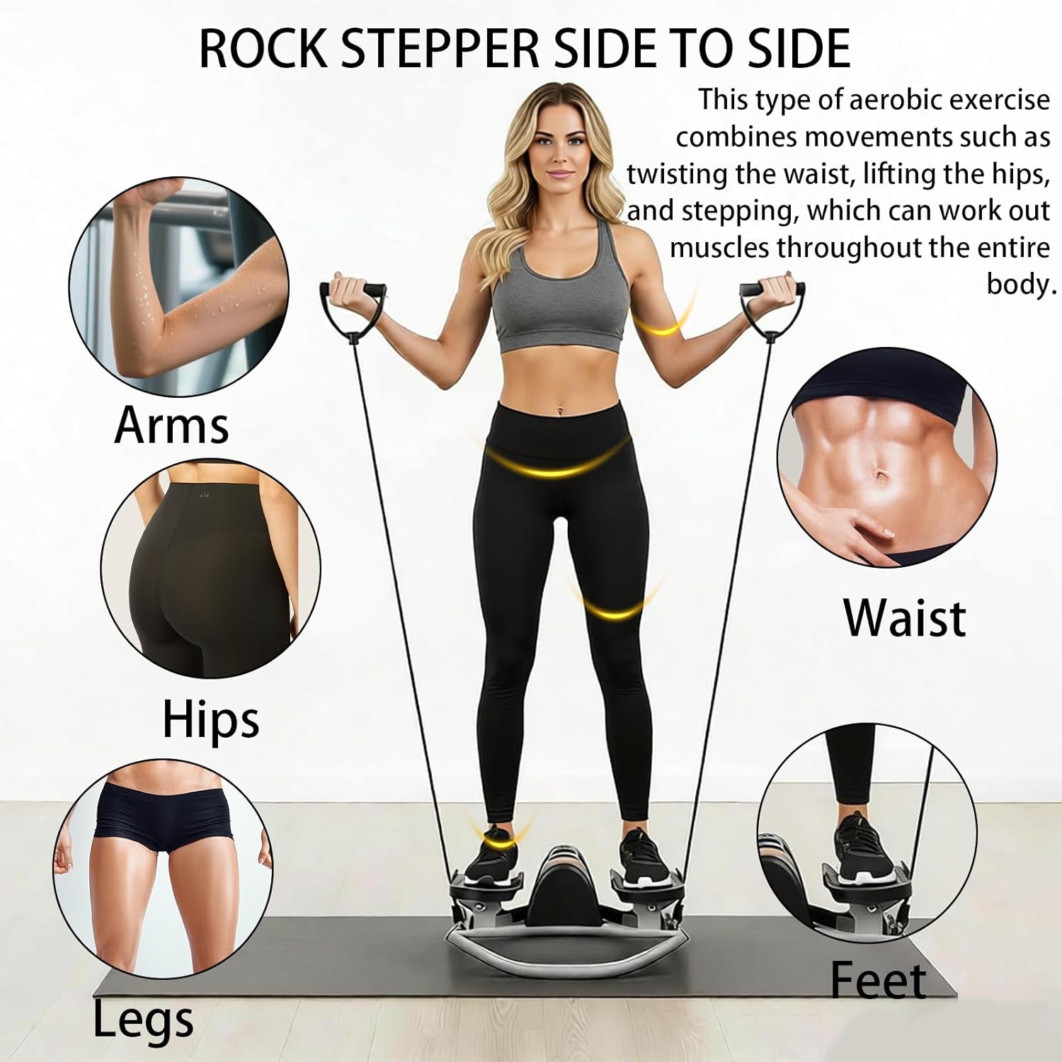 Rock Stepper Side to Side - Compact Quiet Home Fitness with Digital DisplayLooking for a convenient home fitness solution? Our Rock Stepper Side to Side is tailored for women, ideal for fat burning, body shaping and daily workout. It combines safety, quiet operation, space-saving design and accurate data tracking for a professional at-home fitness experience.Why Choose Us?1.Safe & stable: Dual anti-slip + high-carbon steel frame2.Quiet & floor-friendly: Silent wheels + free non-slip mat3.Real-time data tracking via digital display4.Compact, easy to store and move5.Versatile workout options; ideal giftSpecificationsProduct Name:Rock Stepper Side to SideDimensions:49×27×23cm (19.3×10.6×9 inches)Material:High-carbon steelIncluded:1×Stepper, 1×70×40cm Non-slip Mat, 1x ropeDisplay Functions:Scan data, duration, step count, calories, average step frequencyChoose our Rock Stepper Side to Side and start your convenient home fitness journey!